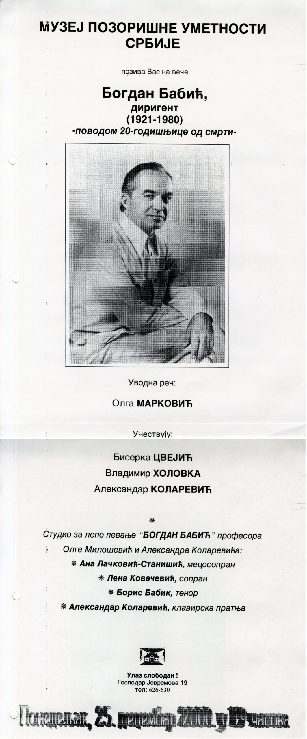 Студио за лепо певање: „Богдан Бабић“, професора