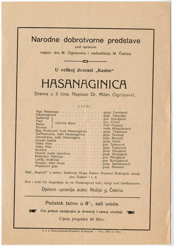 Изложба „МИЛУТИН ЧЕКИЋ (Зачетник модерне режије у српском позоришту, 1912 -1920)“ обележава стогодишњицу увођења модерне режије у српско позориште: Чекићева режија трагедије Ђуре Јакшића, Јелисавета кнегиња црногорска, 21. април, 1912, Народно позориште у Београду.