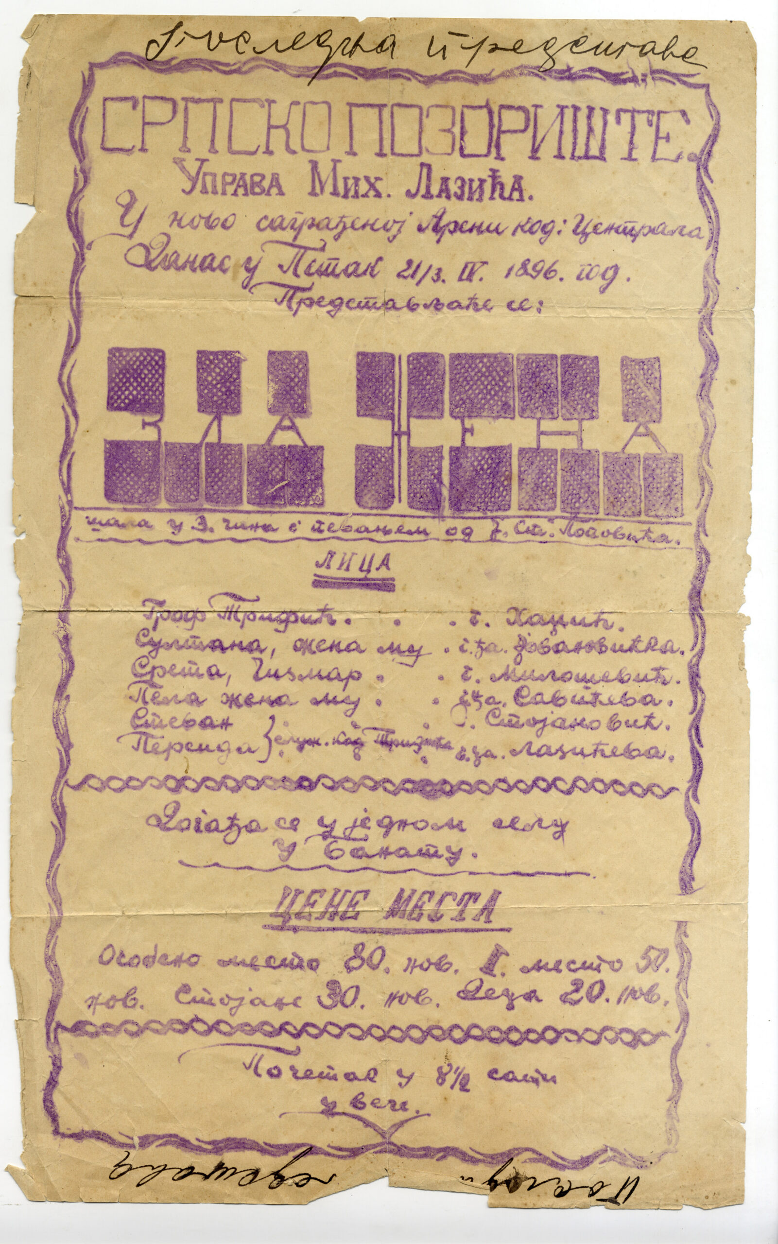 У Србији су у другој половини XIX века, брзо и с пуно импровизација, настајала путујућа позоришта, „пешачке трупе“, „летећи театри“, „путујуће дружине“. Путујући глумци су били заљубљеници у позоришну уметност, поносни, горди чергари који су се посвећивали патриотској и просветитељској улози у разним крајевима земље, приказујући национално књижевно благо кроз позоришну уметност. Доста младих талентованих глумаца је после срушеног почетничног заноса, напуштало трупе, у мукотрпном животу глади, беде и понижења, слабо плаћени процентом од целокупног прихода, изложени сталним путовањима и животним изазовима. То је било време када је одлазак у путујућа позоришта значило бити одметник од постојећег патријархалног живота.
