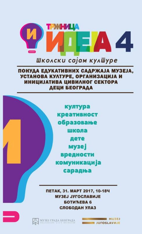 Тржница идеја – школски сајам културе одржан је у организацији Музеја Града 31. марта 2017. године у просторијама Музеја Југославије.