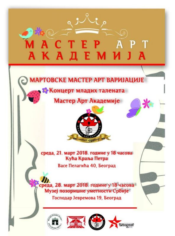 КонцертиМАРТОВСКЕ МАСТЕР АРТ ВАРИЈАЦИЈЕ март 28, 2018фебруар 22, 2026 28 мар Среда, 28. март 2018. у 19:00 сати Музеј позоришне уметности Србије позива Вас на концерт младих талената Мастер арт академије МАРТОВСКЕ МАСТЕР АРТ ВАРИЈАЦИЈЕ Улаз слободан. Добро дошли! „ЈОВАН ЋИРИЛОВ – сви моји савременици у карикатури“ у лазаревцу КИР ЈАЊА НА СЦЕНИ НАРОДНОГ ПОЗОРИШТА У БЕОГРАДУ