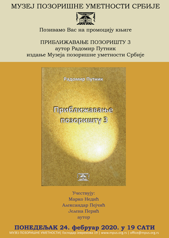 Пред нама је трећа књига овог аутора која је посвећена представљању – позоришних књига. Књижевник, драматург, театролог и позоришни критичар Радомир Путник већ неколико деценија пише о театарским публикацијама, у жељи да себи и читаоцима објасни и приближи радове домаћих и страних театролога, естетичара и историчара драме и театра. Реч је о публикацијама које према мишљењу аутора „пружају занимљивији угао гледања на поједине сегменте драмске књижевности или позоришне историје“.