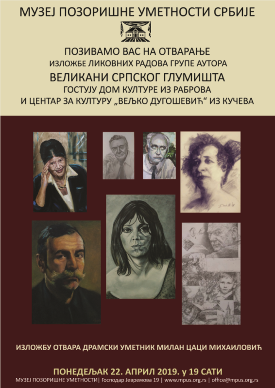 Изложба поводом 100 година Удружења драмских уметника Србије 1 – 30. новембар 2019. у простору Етнографског музеја у Београду Реализација пројекта: Музеј позоришне уметности Србије Позоришни музеј Војводине Архив Србије Историјски архив Београда и Удружење драмских уметника Србије Уредник Мирјана Одавић Координатор Радмила Сандић Графички дизајн Јован Тарбук Видео презентација Предраг Тончић Лого и презентација […]